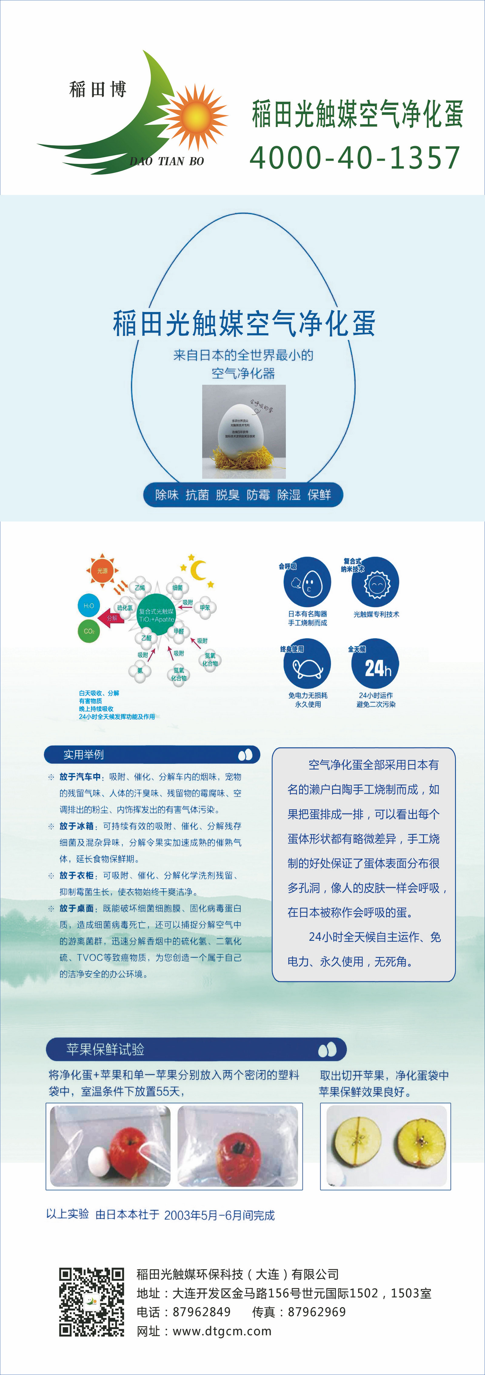 来自日本全世界最小的空气净化机 抗菌、脱臭、防霉、除湿、保鲜 24小时全天侯自主性运作、免电力、永久使用、使用无死角 采用「日本濑户多孔性白云陶器」+「复合式奈米光触媒」,可吸附、分解空气中多种细菌、病毒及异味,去除长期累积的污染源;