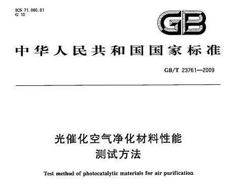 GB/T23761-2009《光催化空气净化材料性能测试方法》