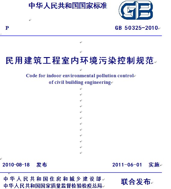 根据我部“关于印发《二000至二00一年度工程建设国家标准制订、修订计划》的通知”(建标[2001]87号)的要求,由河南省建设厅会同有关部门共同编制的《民用建筑工程室内环境污染控制规范》,经有关部门会审,批准为国家标准,编号为GB 50325-2001,自2001年1月1日起施行。其中,1.0.5、3.1.1、3.1.2、3.2.1、4.1.1、4.1.2、4.2.4、4.2.5、4.2.6、4.3.1、4.3.3、 4.3.10、4.3.11、5.1.2、5.2.1、5.2.3、5.2.5、5.2.6、5.3.3、5.3.6、6.0.3、6.0.4、 6.0.18、6.0.20为制性条文,必须严格执行。