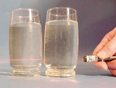 ÔÚ¹âµÄ´«²¥¹ý³ÌÖУ¬¹âÏßÕÕÉäµ½Á£×Óʱ£¬Èç¹ûÁ£×Ó´óÓÚÈëÉä¹â²¨³¤ºÜ¶à±¶£¬Ôò·¢Éú¹âµÄ·´É䣻Èç¹ûÁ£×ÓСÓÚÈëÉä¹â²¨³¤£¬Ôò·¢Éú¹âµÄÉ¢É䣬Õâʱ¹Û²ìµ½µÄÊǹⲨ»·ÈÆÎ¢Á£¶øÏòÆäËÄÖÜ·ÅÉäµÄ¹â£¬³ÆÎªÉ¢Éä¹â»òÈé¹â¡£¶¡´ï¶ûЧӦ¾ÍÊǹâµÄÉ¢ÉäÏÖÏó»ò³ÆÈé¹âÏÖÏó¡£ÓÉÓÚÈܽºÁ£×Ó´óСһ°ã²»³¬¹ý100nm£¬Ð¡Óڿɼû¹â²¨³¤£¨400nm¡«700nm£©£¬Òò´Ë£¬µ±¿É¼û¹â͸¹ýÈܽºÊ±»á²úÉúÃ÷ÏÔµÄÉ¢Éä×÷Ó᣶ø¶ÔÓÚÕæÈÜÒº£¬ËäÈ»·Ö×Ó»òÀë×Ó¸üС£¬µ«ÒòÉ¢Éä¹âµÄÇ¿¶ÈËæÉ¢ÉäÁ£×ÓÌå»ýµÄ¼õС¶øÃ÷ÏÔ¼õÈõ£¬Òò´Ë£¬ÕæÈÜÒº¶Ô¹âµÄÉ¢Éä×÷ÓúÜ΢Èõ¡£´ËÍ⣬ɢÉä¹âµÄÇ¿¶È»¹Ëæ·ÖÉ¢ÌåϵÖÐÁ£×ÓŨ¶ÈÔö´ó¶øÔöÇ¿¡£ËùÒÔ˵£¬½ºÌåÄÜÓж¡´ï¶ûÏÖÏ󣬶øÈÜҺûÓУ¬¿ÉÒÔ²ÉÓö¡´ï¶ûÏÖÏóÀ´Çø·Ö½ºÌåºÍÈÜÒº¡£