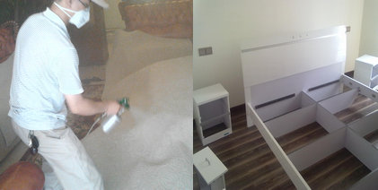 1、针对甲醛存在的人造板材家具、复合木地板、柜子等木制品、进行高温熏蒸(甲醛等有机气体有易挥发属性,熏蒸使其表层和中间层的有机物气化),然后用甲醛消解媒、苯清除剂、TVOC溶解酶、异味清除剂,4种药剂分别对木制品进行喷洒或涂擦,达到完清除表面的和封闭内层不稳定的甲醛、苯、综合有机气体和去除异味的目的。