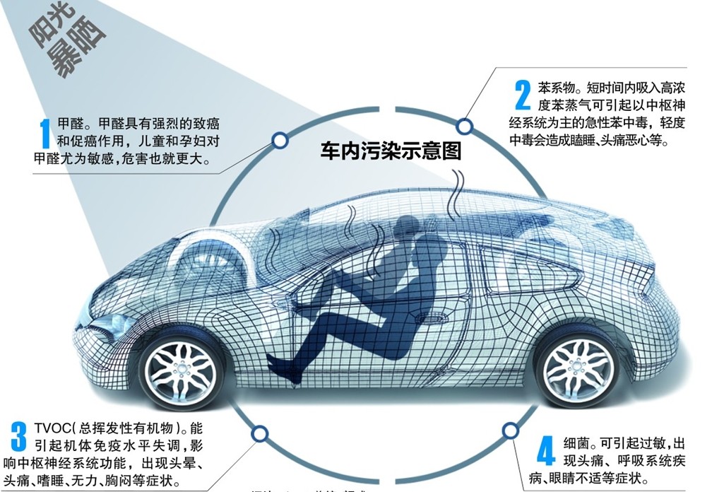 谨防车内空气污染5种方法除去异味,自驾出行,在长时间驾驶过程中,有人会有头昏、恶心、打喷嚏、流眼泪等不适症状出现,这很有可能是车内空气质量惹得祸。近日,全球首家基于SNS的实名制专业汽车问答网站发布《“健康汽车”检测报告》显示,检测了市场上在售的32个品牌、共计44款车型中,有11款车型内饰中的致癌物多环芳烃含量超标。