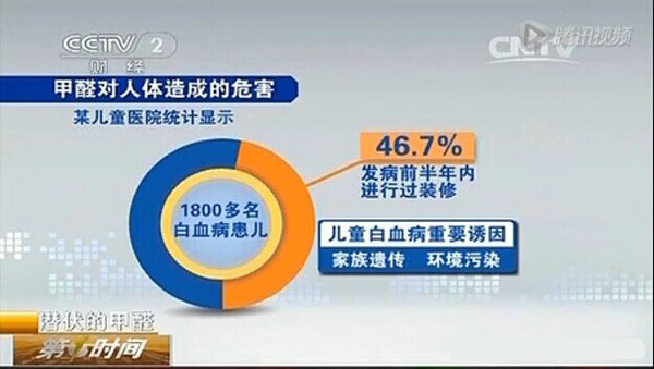 甲醛会对人体造成危害早已是不争的事实,统计数据显示,在一家儿童医院血液病研究所10年收治的1800多名白血病患儿中,有46.7%的孩子的家里在发病前半年内进行过装修。