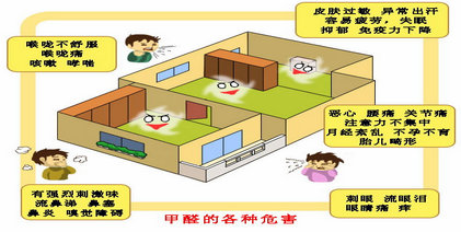 甲醛浓度值:0.26~0.5 mg/ m3,感觉:眼睛、咽喉、鼻腔感到轻微刺激、干涩